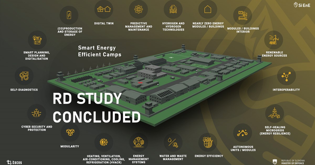 • In 2021, we successfully completed an RD study for the Ministry of Defence of the Republic of Slovenia (Si MoD) on ways of developing smart and energy-efficient deployable camps for both defence and civilian purposes (so-called dual use).