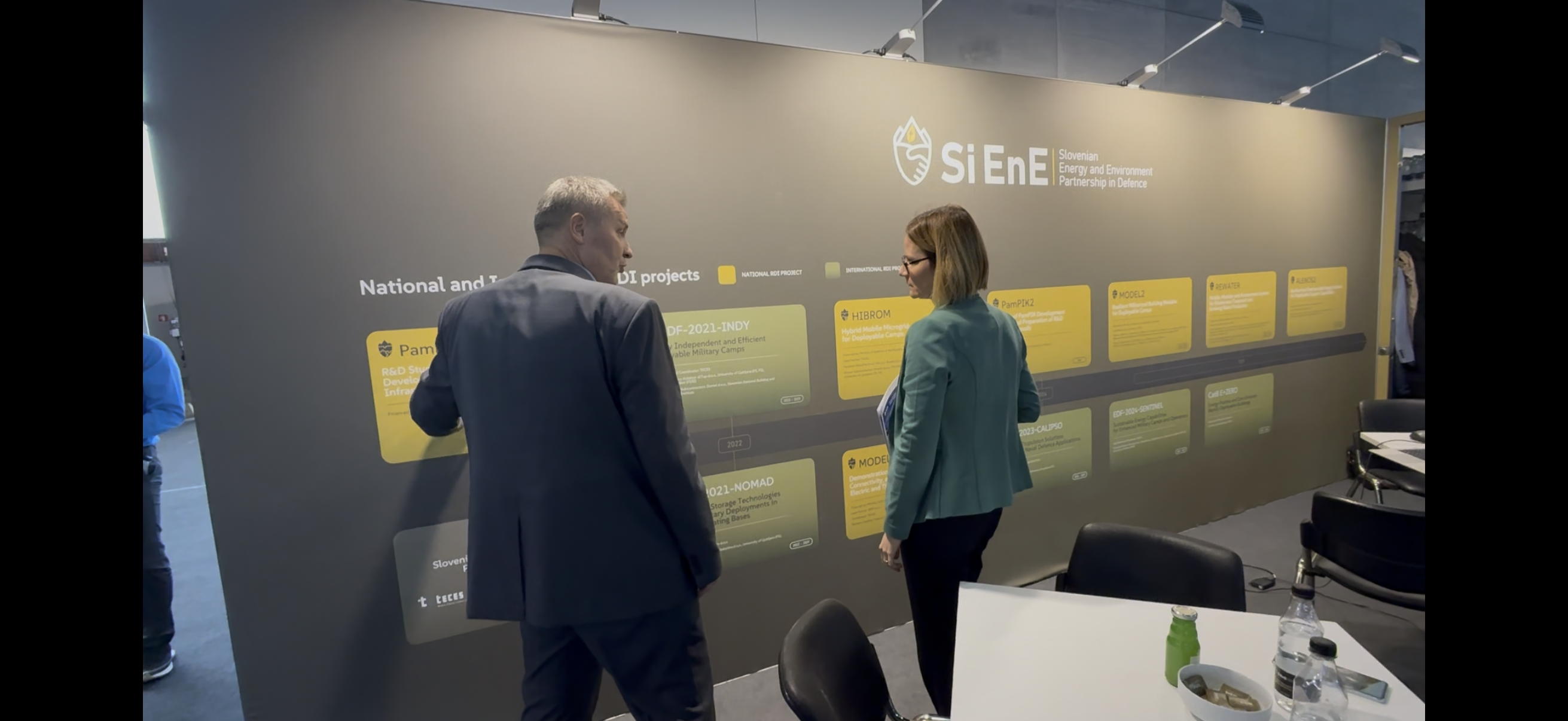 TECES in Slovensko partnerstvo za energijo in okolje na obrambnem področju (SiEnE) sta na sejmu predstavila številne nacionalne in mednarodne projekte, izvedene v okviru partnerstva, ter z močno in raznoliko zasedbo članov prikazala inovativne rešitve dvojne rabe, namenjene povečanju energetske odpornosti obrambnega in civilnega sektorja.